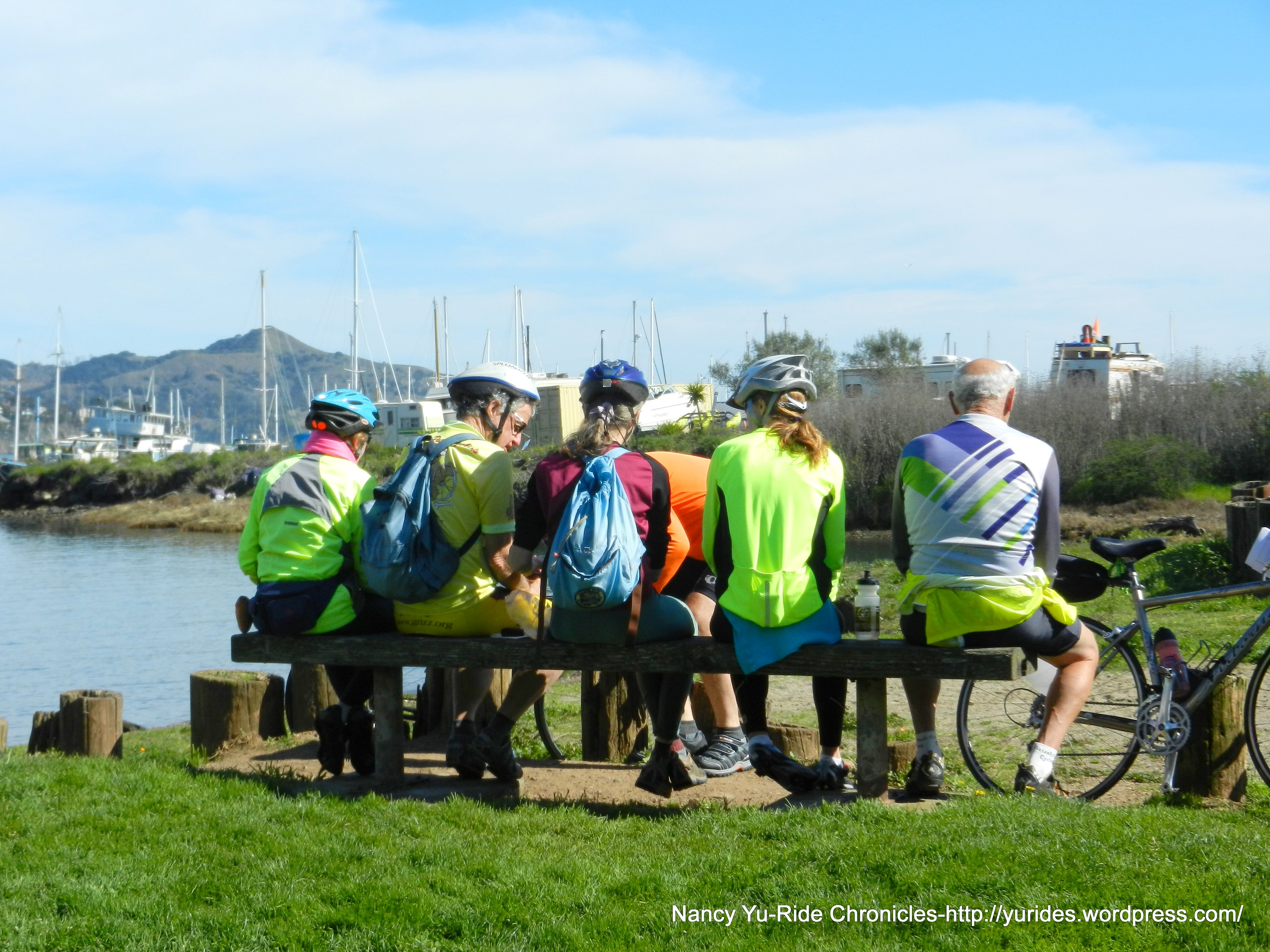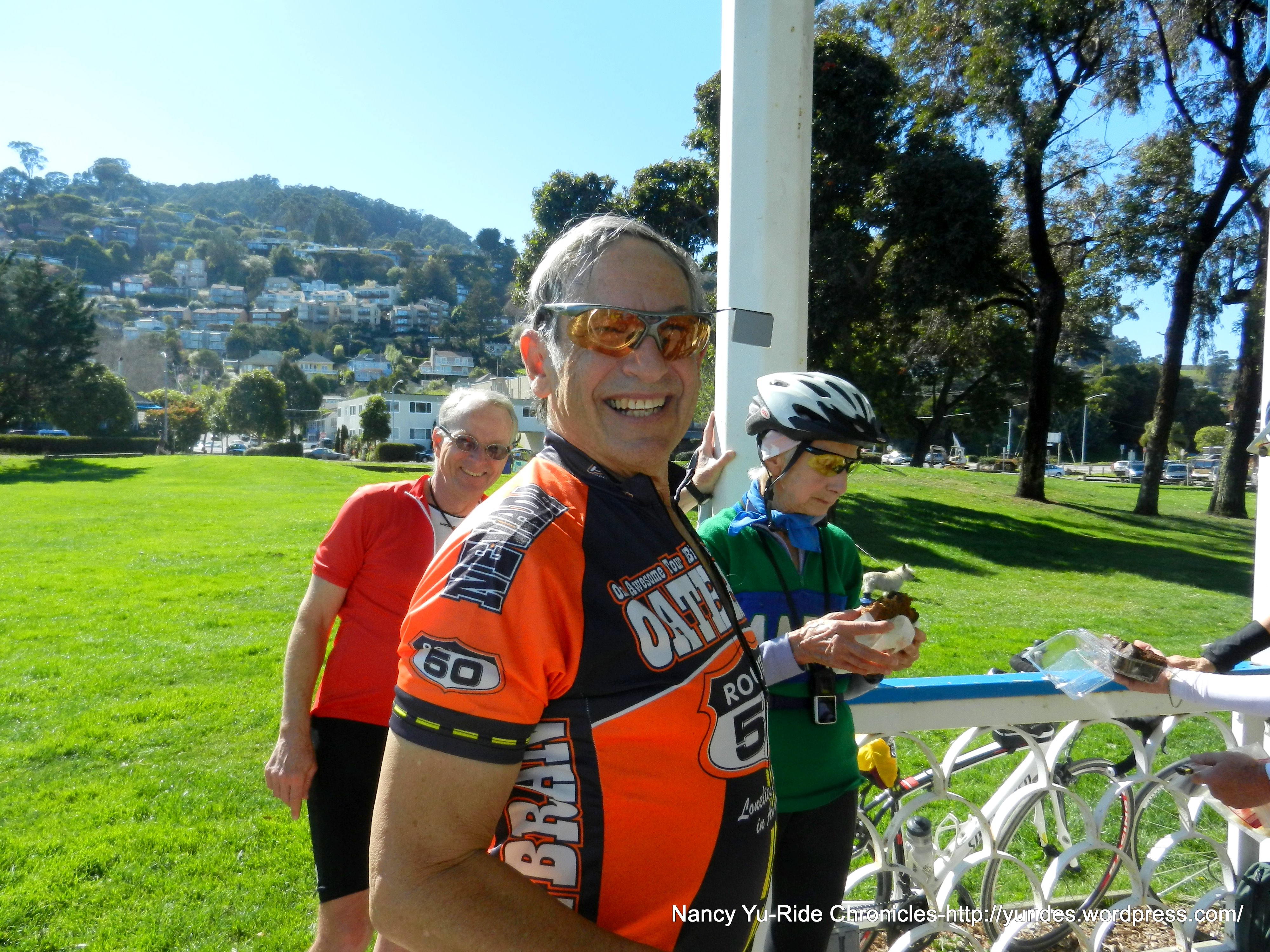We arrive at our lunch stop at Dunphy Park off Bridgeway in Sausalito. Thanks to Mark S, Mary and Dolores for providing the different varieties of brownies as birthday treats!