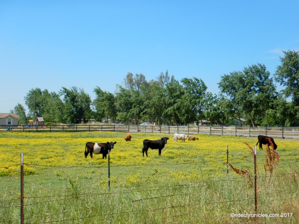 The route wiggles through the orchards on E Comstock and Clements to the open grazing pastures and rangelands around E Messick Rd.