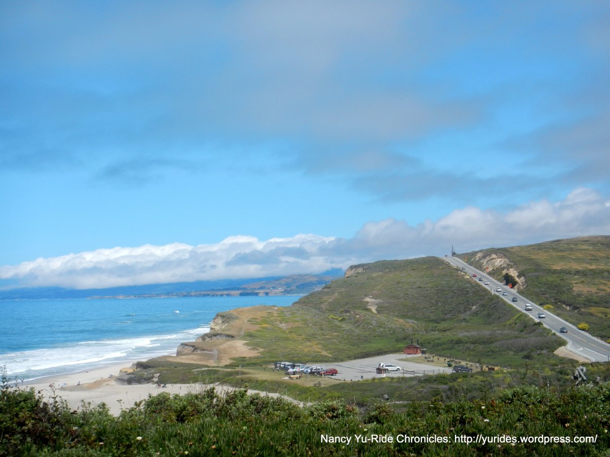 The turn on Bean Hollow Rd take us north with a short climb up along a ridge with breathtaking views of the Santa Cruz Mountains and of the valleys below! The sweeping descent drops us into the small town of Pescadero.