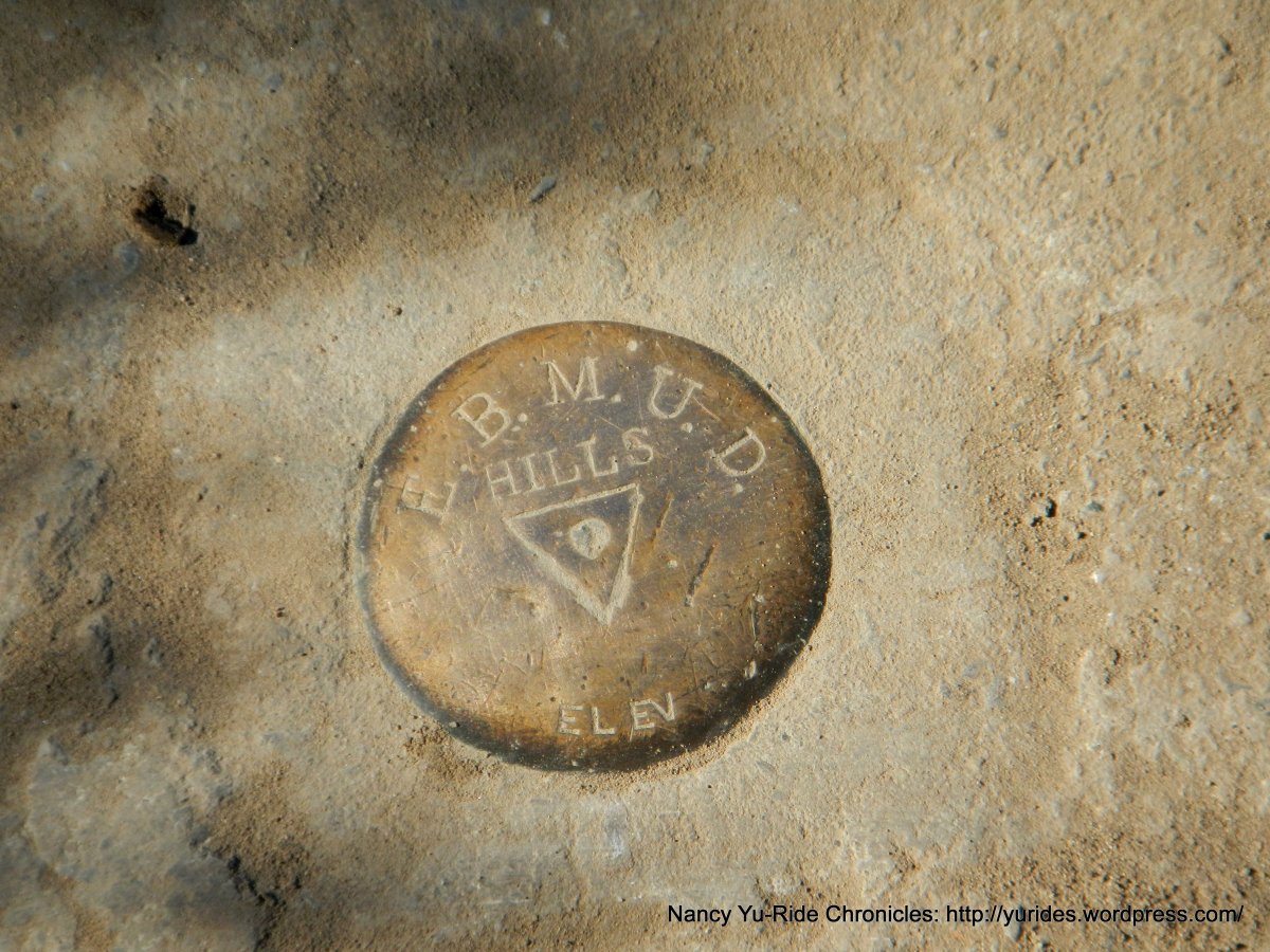 Stay on the Briones Crest Trail to Briones Peak. At 2.83 Miles near the top of the ridge, you will come to a unmarked narrow trail on the left-it leads to a short fence with a bench on the other side. Climb over and sit a spell to enjoy the view of Carquinez Strait from Briones Peak at 1483′ and check out the worn out bronze emblem marking the summit!