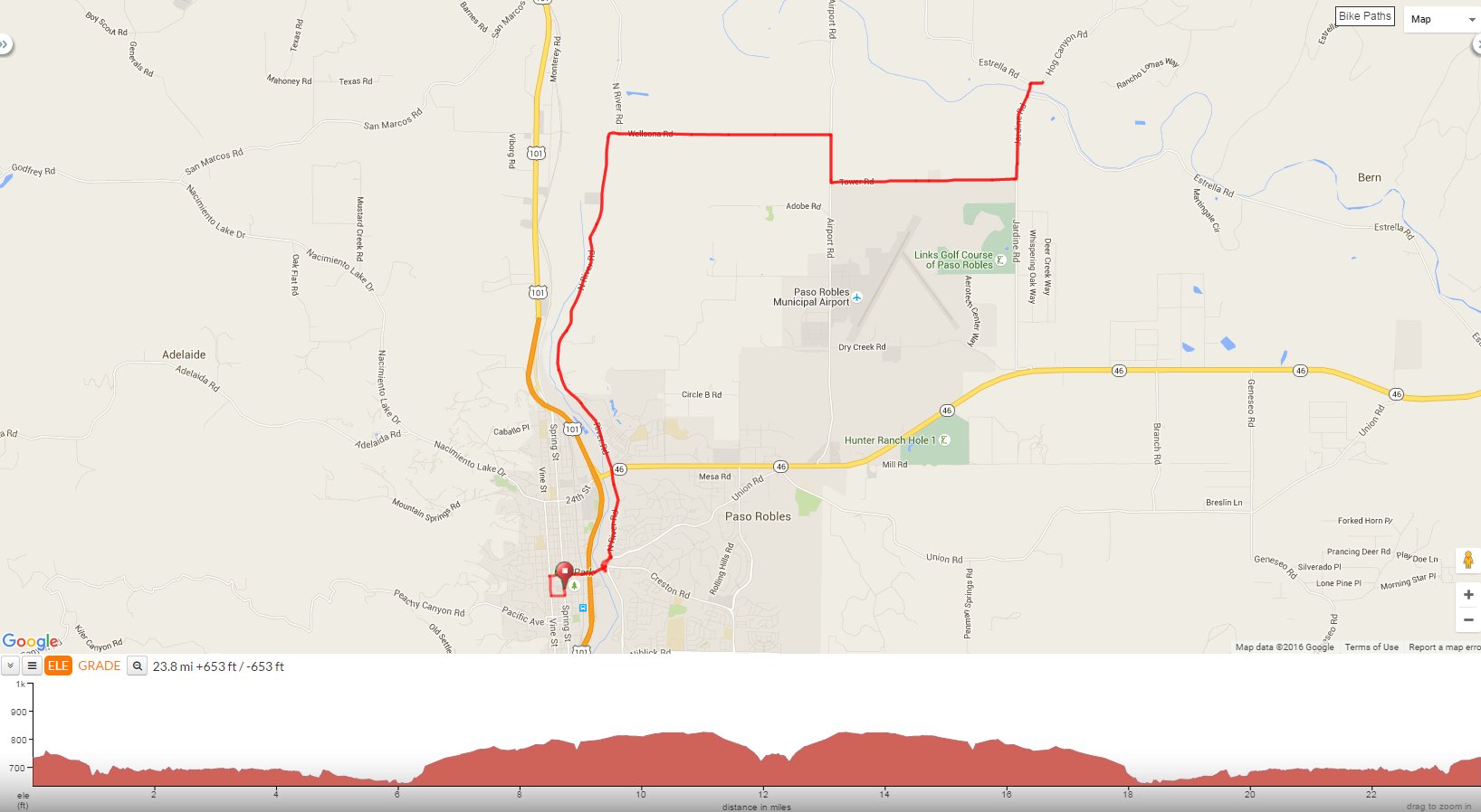 Head east on Hog Canyon towards the ranching community. On the rolling hills, I break a front wheel spoke and decide to cut the ride short. At this point, I turn around and retrace the route back into Paso Robles