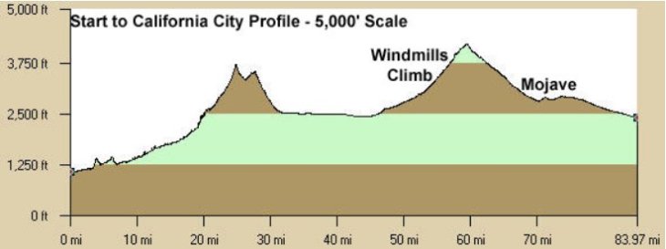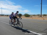 But all good things must come to an end and we make a left turn back into the wind. We zigzag in and out of the wind for a few miles, ending with a zag that equals fantastic tailwinds which push us all the way through to California City. At one point I was getting a bit bored of pedaling at 35 MPH but then Deb slapped me and I came to my senses.