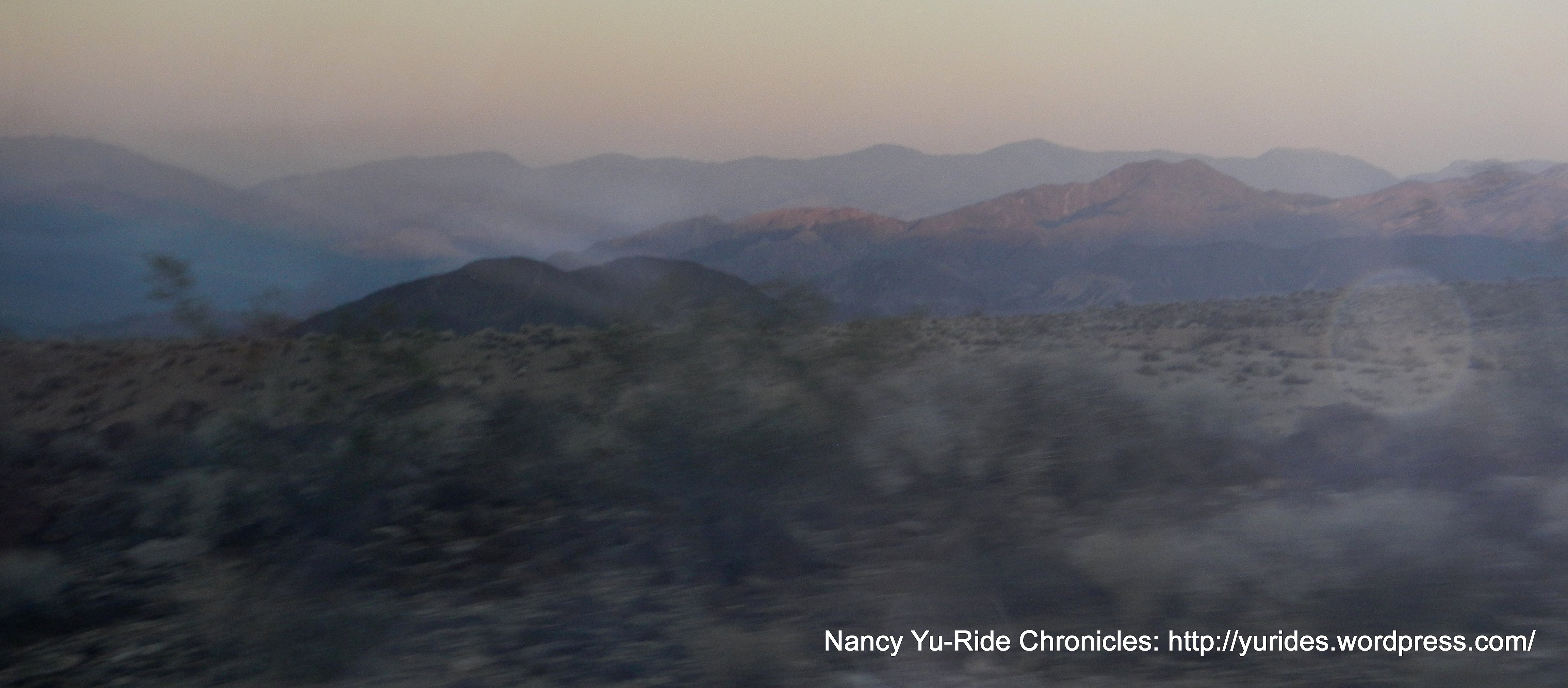 The road was flat for 15 miles and then we turned east to start the climb up Jubilee Pass. The climb was gradual at first and then we were grinding up the 6- 7% grade, 5 miles to the pass. We were elated to reach the pass! We rode a mile downhill and the started the 9 mile climb to Salsberry Pass.