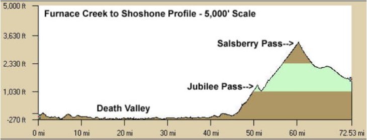 We rode 20 miles of rollers to Badwater, 282’ below sea level. Soon after, we stopped with the truck to do the driver shuffle. We jumped back on the bike and it was “Groundhog Day”, we had to passed all the teams and riders we just passed an hour or so earlier.